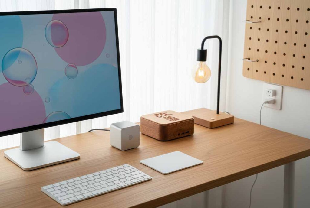 En ancrant sa structure dans la profondeur ambrée du Sipo et en la couronnant d’un plateau en Hêtre clair, ce mini PC crée un contraste raffiné et apaisant. Une pièce d’ébénisterie d’art conçue pour ceux qui recherchent un objet technologique doté d’une forte identité visuelle.
