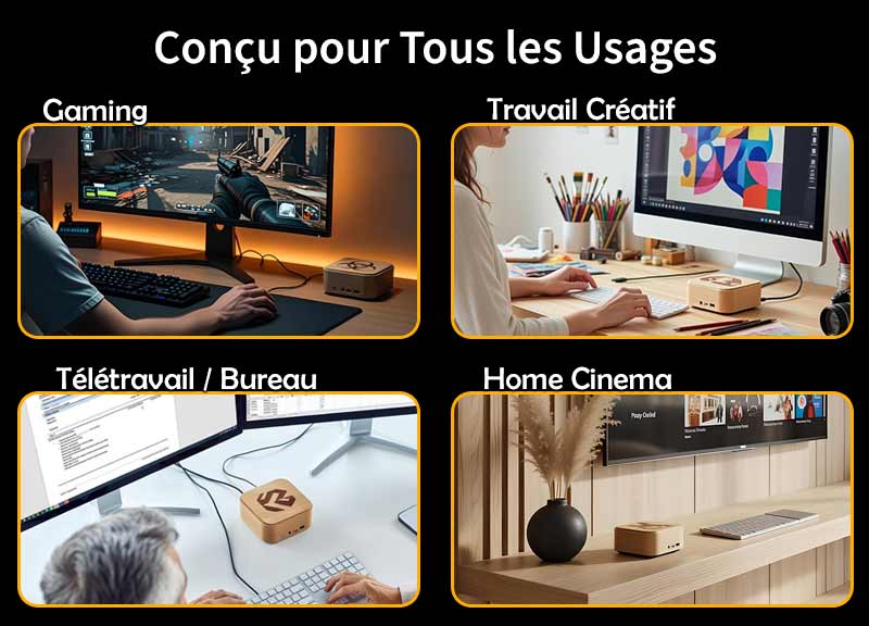 Le top pour mon setup ! Je cherchais une machine compacte et c'est nickel : je fais pas mal de montage vidéo et je joue à Valorant ou Manor Lords sans aucun soucis de fluidité. Le boîtier en bois est super propre et l'incrustation rend trop bien. ça donne un côté premium au bureau. En plus, il ne fait aucun bruit, même en plein travail on l'entend à peinne. 10/10