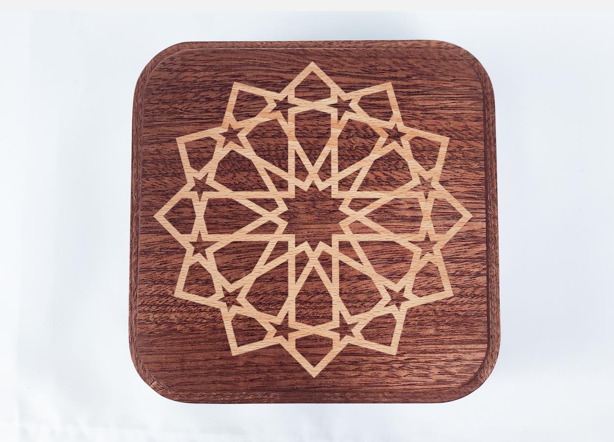 Sublimez la profondeur du Sipo. Notre technique d’incrustation artisanale permet d’intégrer des motifs d’une finesse extrême directement dans la matière. Que vous choisissiez un design de notre collection Signature ou une création Sur-Mesure, votre Serenity devient une œuvre d’art unique, gravée pour l’éternité.